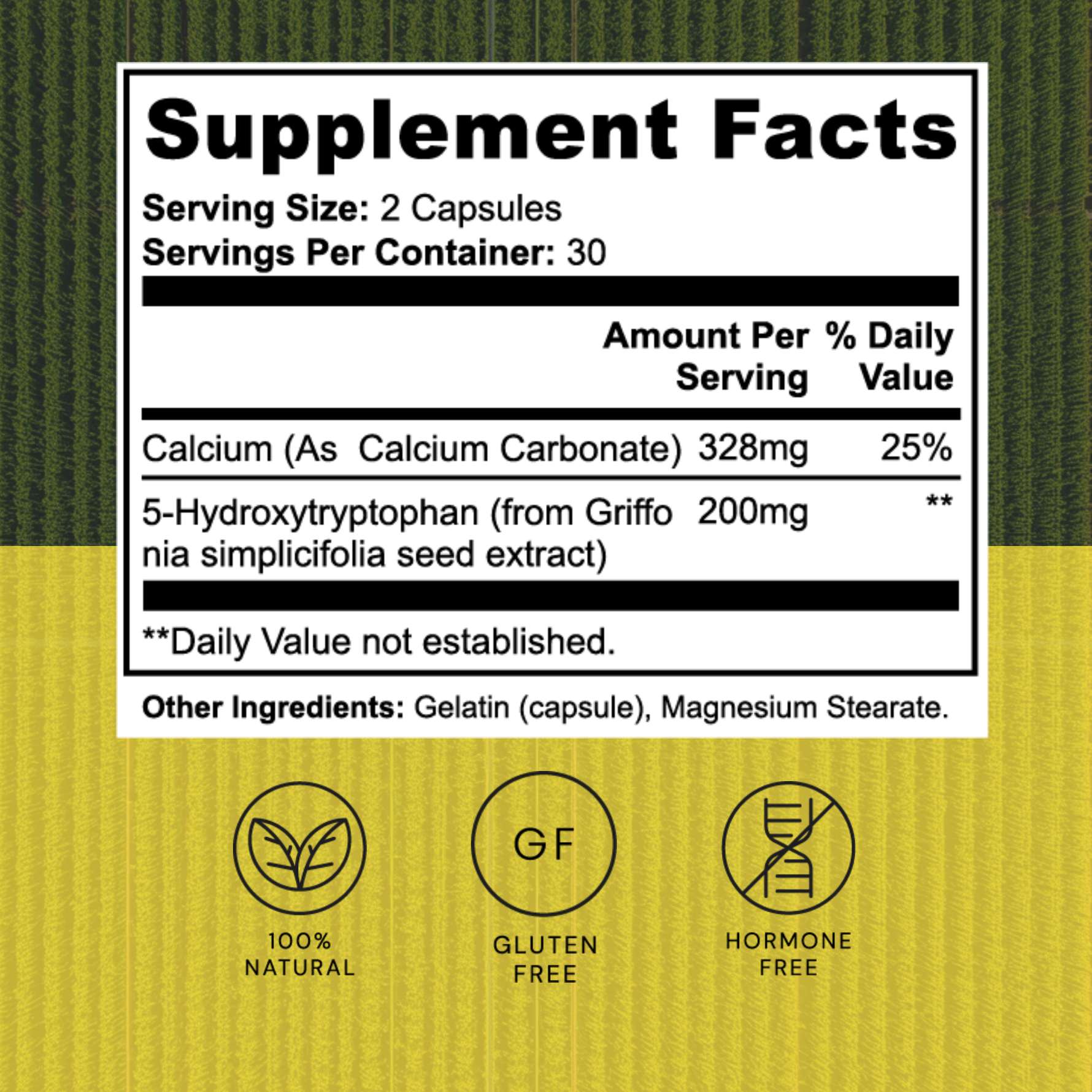 5-HTP capsules to support serotonin levels, mood balance, sleep, and emotional stability