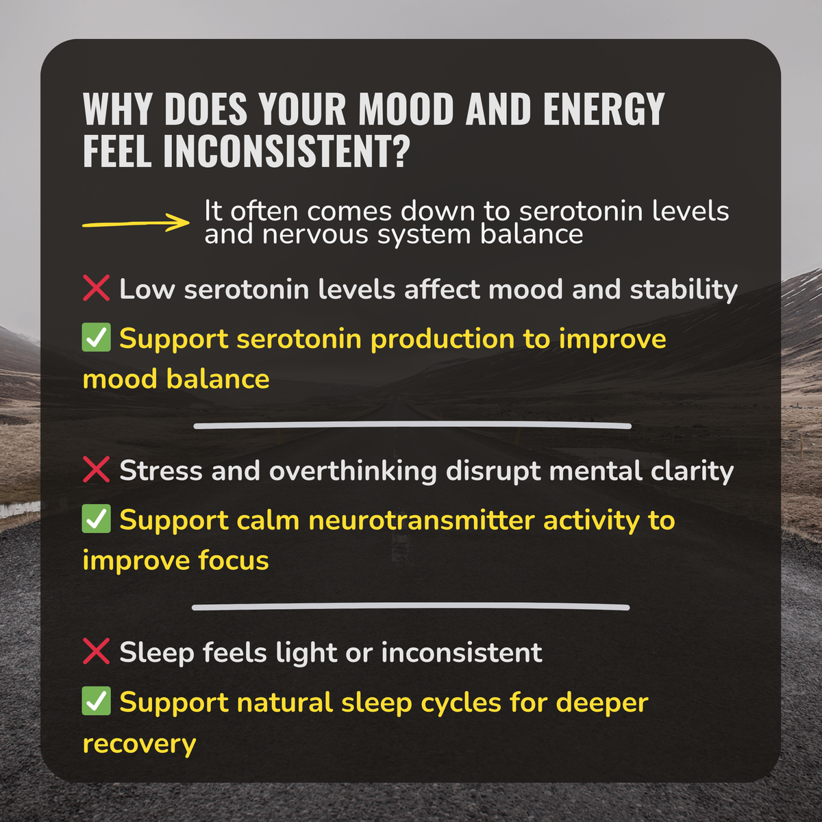 Helps increase serotonin levels to promote a more positive, steady mindset