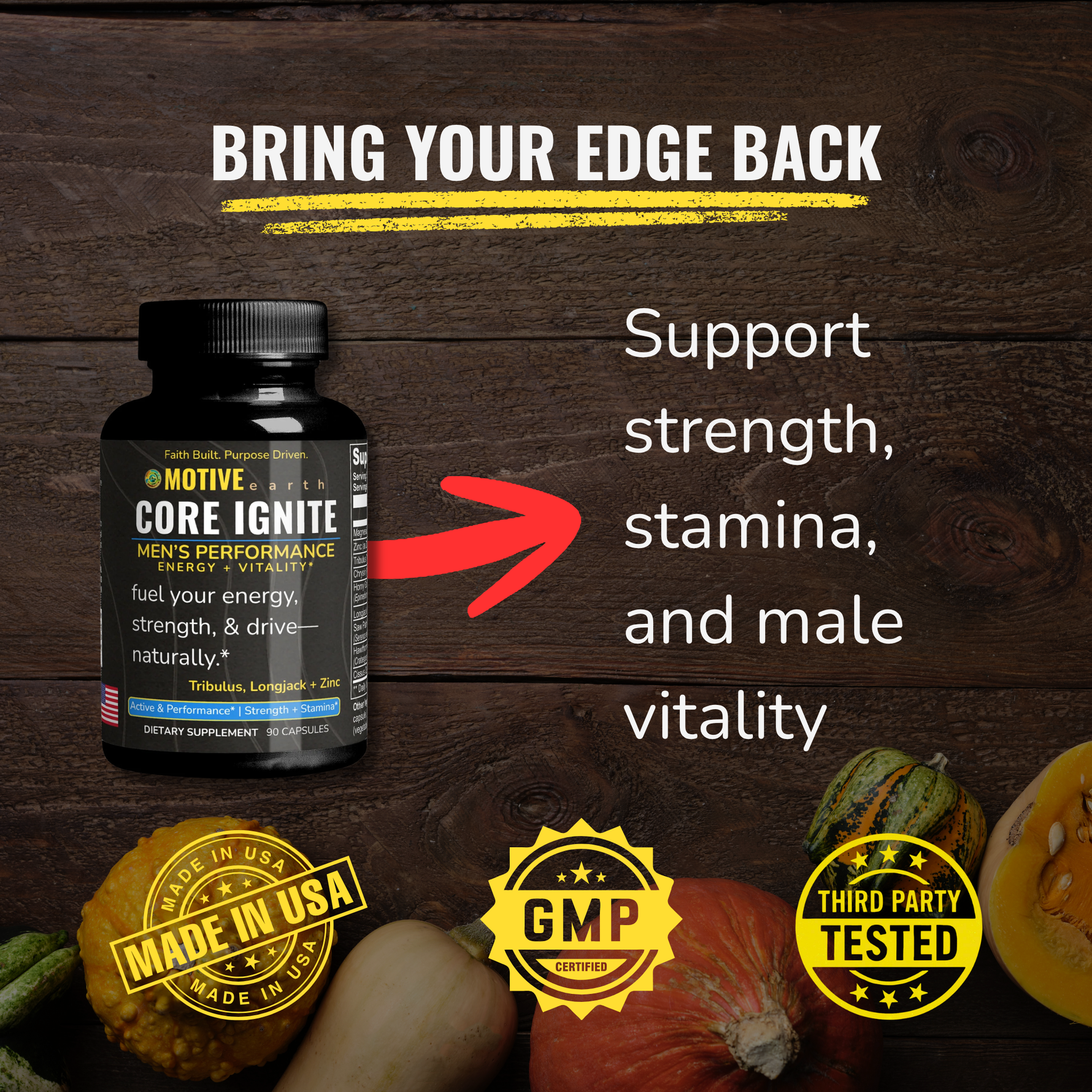 Men’s performance formula with Tribulus, Longjack, Zinc, and Magnesium for energy, strength, and vitality